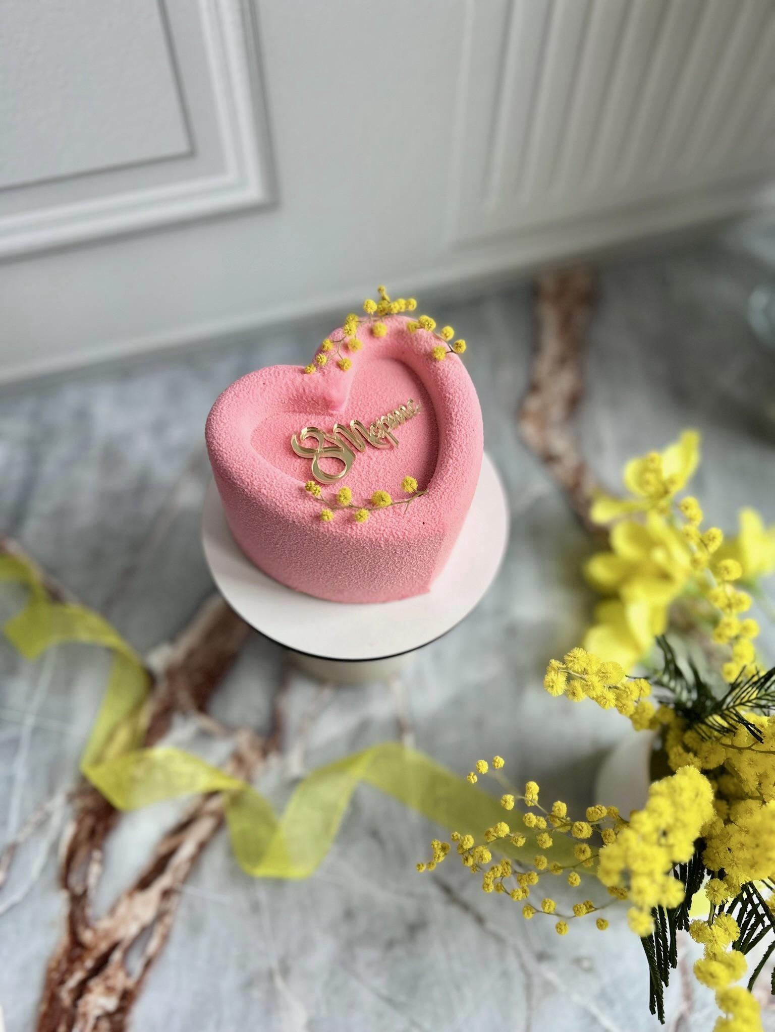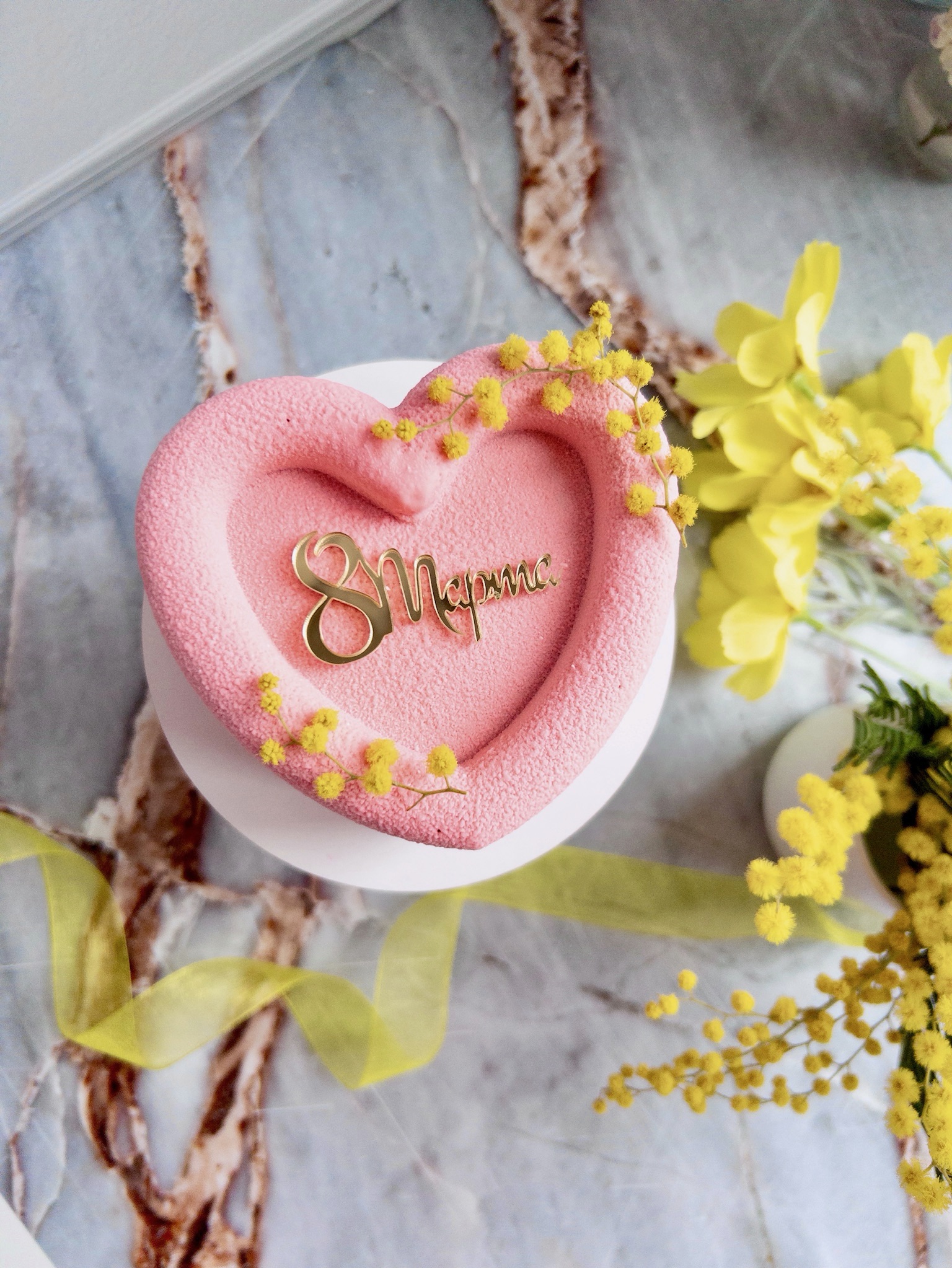 Мусовый торт с шоколадным покрытием велюр - Сердце на 8 Марта (Манго-маракуйя)