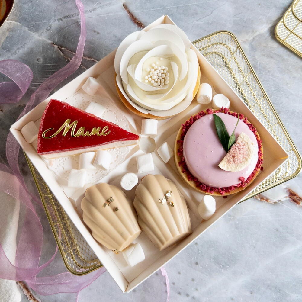 В наборе: 1. Чизкейк «Клубничный пломбир» 2. Тарталетка Фисташка-вишня 3. Тарталетка Тропическая 4. Печенье Мадлен «Мак манго-маракуйя»