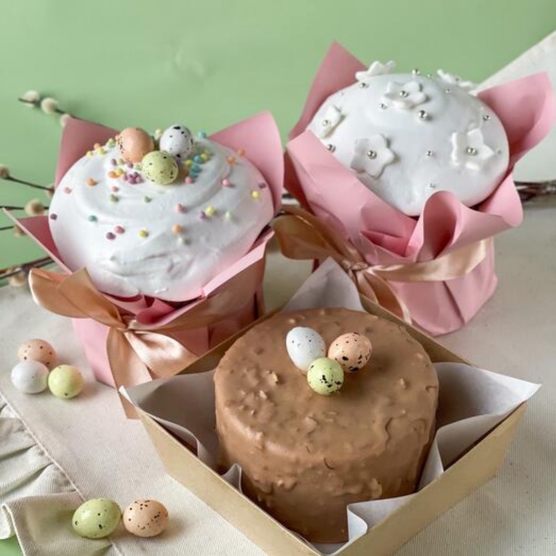 Пасхальный набор 2 кулича творожных и бенто пасха ванильная